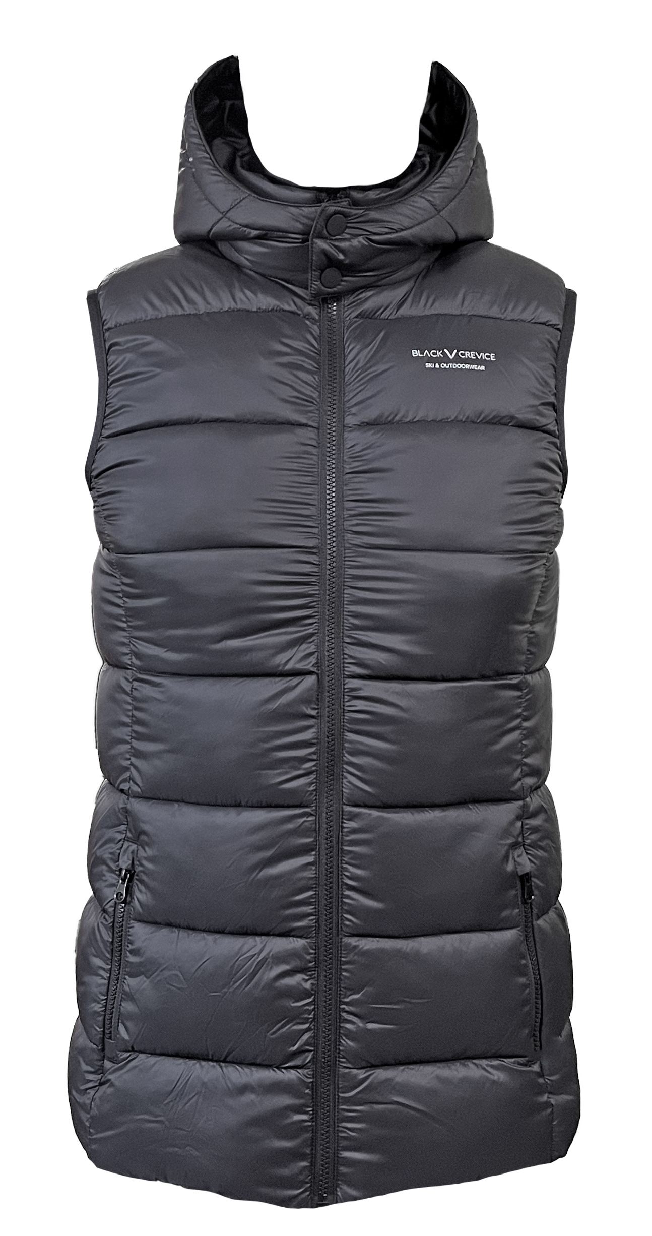 Czarna pikowana kamizelka damska z kapturem świetnie sprawdzi się podczas tworzenia stylizacji sportowych i miejskich. Wykonana jest w 100% z nylonu. Ta klasyczna w kroju kamizelka będzie doskonałą alternatywą dla kurtki w sezonie jesiennym, zapewniając ochronę przed chłodem i wiatrem. Jest zapinana na zamek błyskawiczny i posiada kołnierz typu stójka. Dwie kieszenie zewnętrzne zapinane na zamek błyskawiczny dodają jej praktycznego charakteru. Z powodzeniem zastąpi kurtkę przejściową a nawet bluzę, zapewniając ochronę przed chłodem i wiatrem.