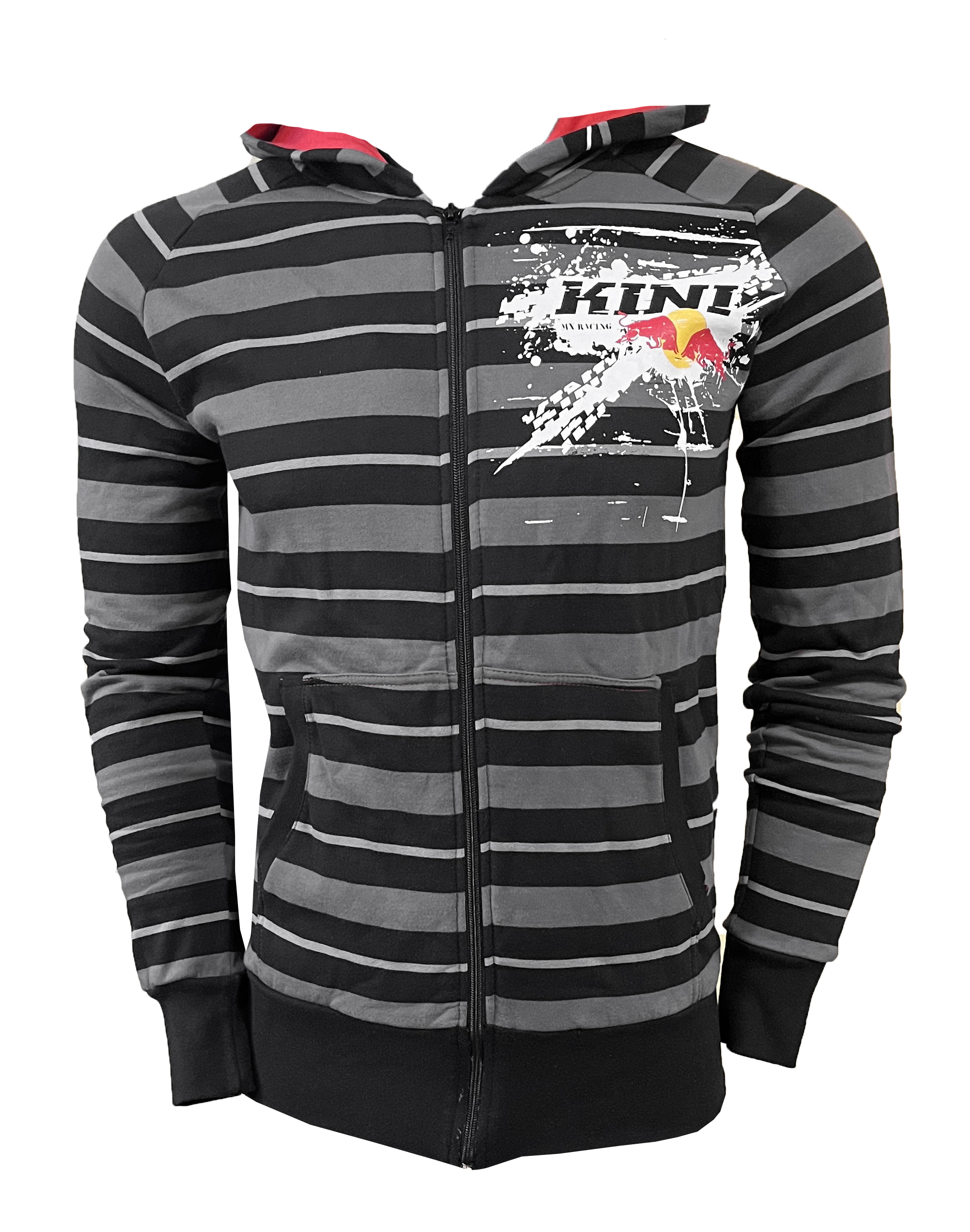 Bluza dresowa z kapturem i dużym nadrukiem oraz haftem z logo KINI Red Bull, kaptur wewnętrzny wykonany z kontrastowego materiału. Bluzy dresowe KINI Red Bull z kapturem i zamkiem błyskawicznym doskonale nadają się do wszelkich aktywności na świeżym powietrzu lub do noszenia na co dzień na wiosnę lub jesień. Noś go na torze lub w mieście, przyciąga wiele stylizacji. CECHY • regulowany kaptur ze sznurkami • kaptur wewnętrzny podszyty kontrastowym kolorem • dwie boczne kieszenie ukośne • mocny metalowy zamek błyskawiczny • Haft z logo „Wings For Life” na rękawie Materiał 70% bawełna, 30% poliester