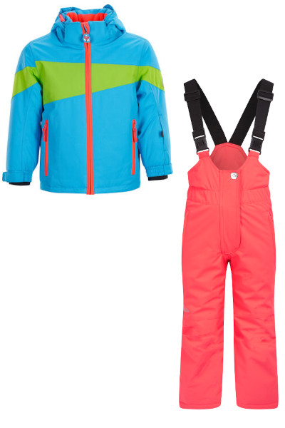 Dziecięcy zestaw narciarski składa się z kurtki i spodni.