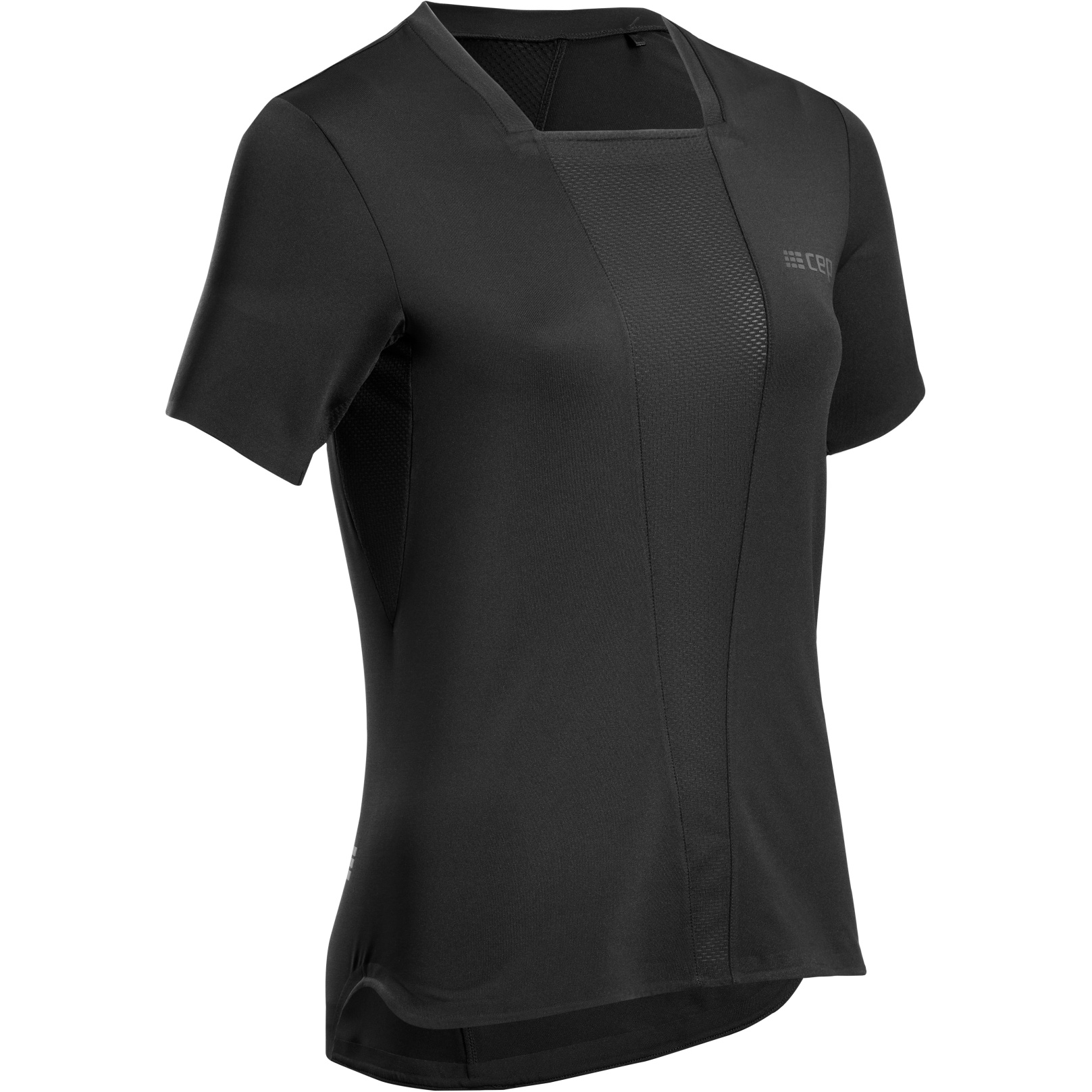 Koszulka do biegania z krótkim rękawem i okrągłym dekoltem firmy CEP jest wykonana z materiałów funkcjonalnych pochodzących z recyklingu. Ma działanie regulujące wilgotność i oddychające. Dodatkowo siateczkowa struktura na plecach i pod pachami stwarza efekt wentylacji. Regularny krój zapewnia wygodę, a szwy przesunięte do tyłu zapewniają maksymalną swobodę ruchów ramion.