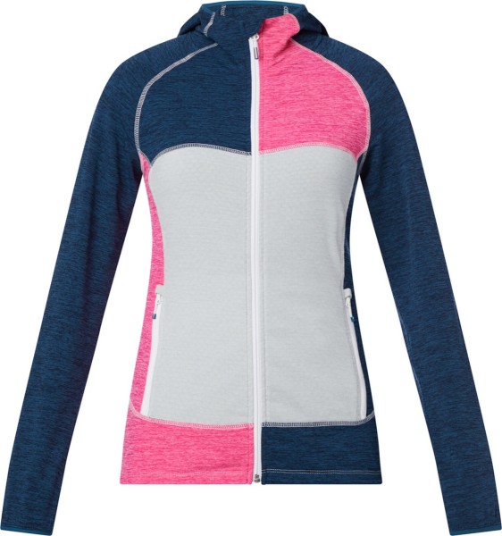McKinley Montina hd wms to damska bluza z kapturem, która nadaje się do wędrówek i innych zajęć rekreacyjnych. Wykonana jest z przyjaznego dla środowiska materiału syntetycznego, który szybko schnie i dobrze odprowadza wilgoć. Ma zamek błyskawiczny, kaptur i dwie kieszenie boczne.