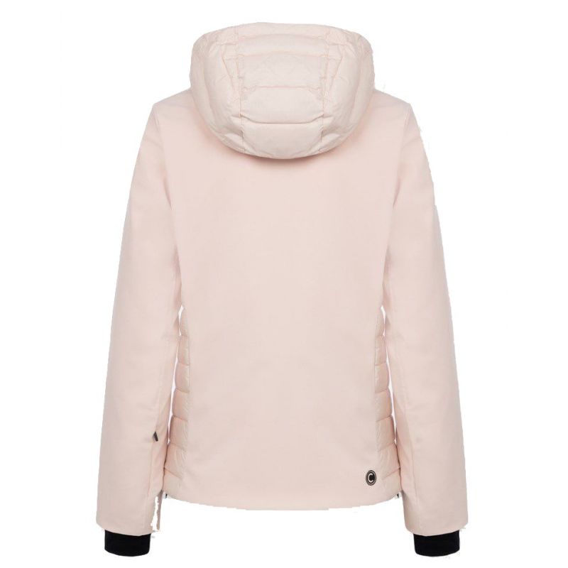 Ta damska kurtka narciarska została wykonana z wodoodpornego, elastycznego materiału softshell, odpornego na ciśnienie wody do 10 000 mm i oferującego oddychalność 10 000 g/m²/24 h. Z pikowanymi wstawkami z miękkiego materiału ripstop, dostępna jest w jednolitym kolorze lub w odcieniu imitującym skórę. Łączy dwie watoliny o różnej gramaturze dla optymalnego ciepła, a także wykorzystuje watolinę z recyklingu oraz ekologiczną, hydrofobową powłokę Teflon EcoElite™, w ramach projektu COLMAR Green Path.
