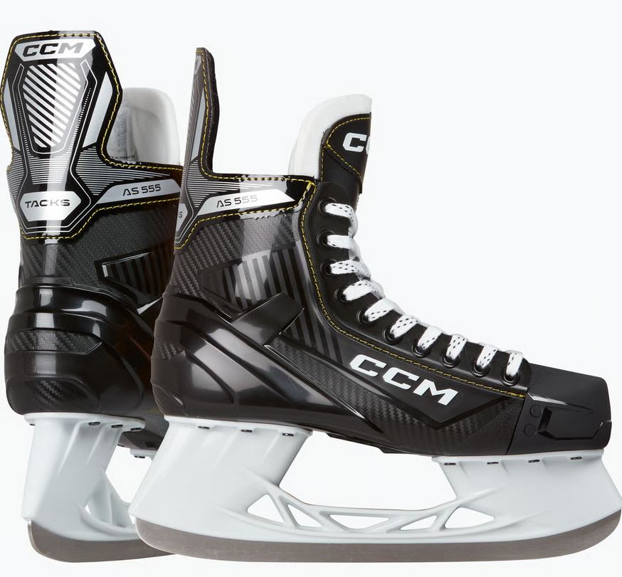 Tacks AS555 to wysokiej jakości, wygodne łyżwy hokejowe marki CCM. Łyżwy charakteryzują się ergonomicznym dopasowaniem i sztywnością 115, co zapewnia dobrą równowagę i swobodę ruchów. Wygoda od pierwszego użycia jest zapewniona dzięki językowi o grubości 5 mm z dodatkową pianką oraz wkładce z wytrzymałą wyściółką z mikrofibry HD, która dopasowuje się do stopy. Stalowa szyna Speedblade osadzona jest na podwyższonym uchwycie, co zwiększa prędkość na lodzie.