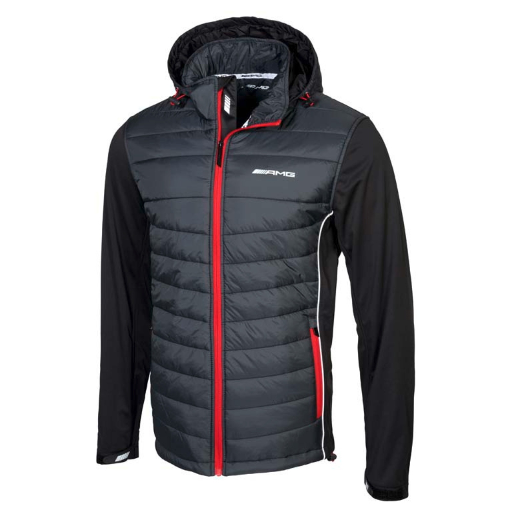 Gotowa na każdą pogodę: ta kurtka softshell AMG dla mężczyzn to sportowa, dynamiczna kurtka hybrydowa zapewniająca niezawodną ochronę przed wiatrem i deszczem dzięki powłoce poliuretanowej. Dopasowana kurtka ma wodoodporne zapięcie na suwak i wysoki kołnierz z osłoną podbródka. Dwie zapinane na zamek kieszenie boczne, różne kieszenie wewnętrzne, regulowane mankiety na rzepy oraz sznur ze stoperem do regulacji szerokości dopełniają funkcje. Wydajna kurtka jest równie imponująca, jeśli chodzi o design, a ponadczasowy kolor podkreślony kontrastami czerni, bieli i czerwieni. Biały nadruk z logo AMG z przodu jest szczególnie atrakcyjnym dodatkiem.