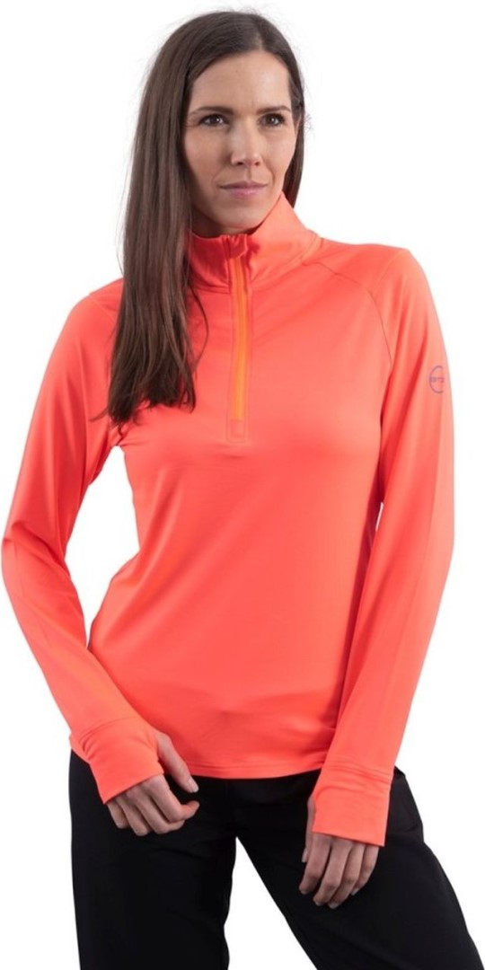 Damska koszulka sportowa GTS wykonana z rozciągliwego, szybkoschnącego, antybakteryjnego i oddychającego materiału.Koszulka ma długi rękaw, klasyczny prosty krój, wyższą stójkę, rogowy zamek pod szyją i pod brodą osłonę zapobiegającą nieprzyjemnemu szczypaniu. Odwrotna strona jest czesana delikatnym polarem, ta podszewka zapewnia maksymalny komfort termiczny. Dzięki rozciągliwemu materiałowi koszulka będzie się z Tobą dobrze układać, nie krępuje ruchów.