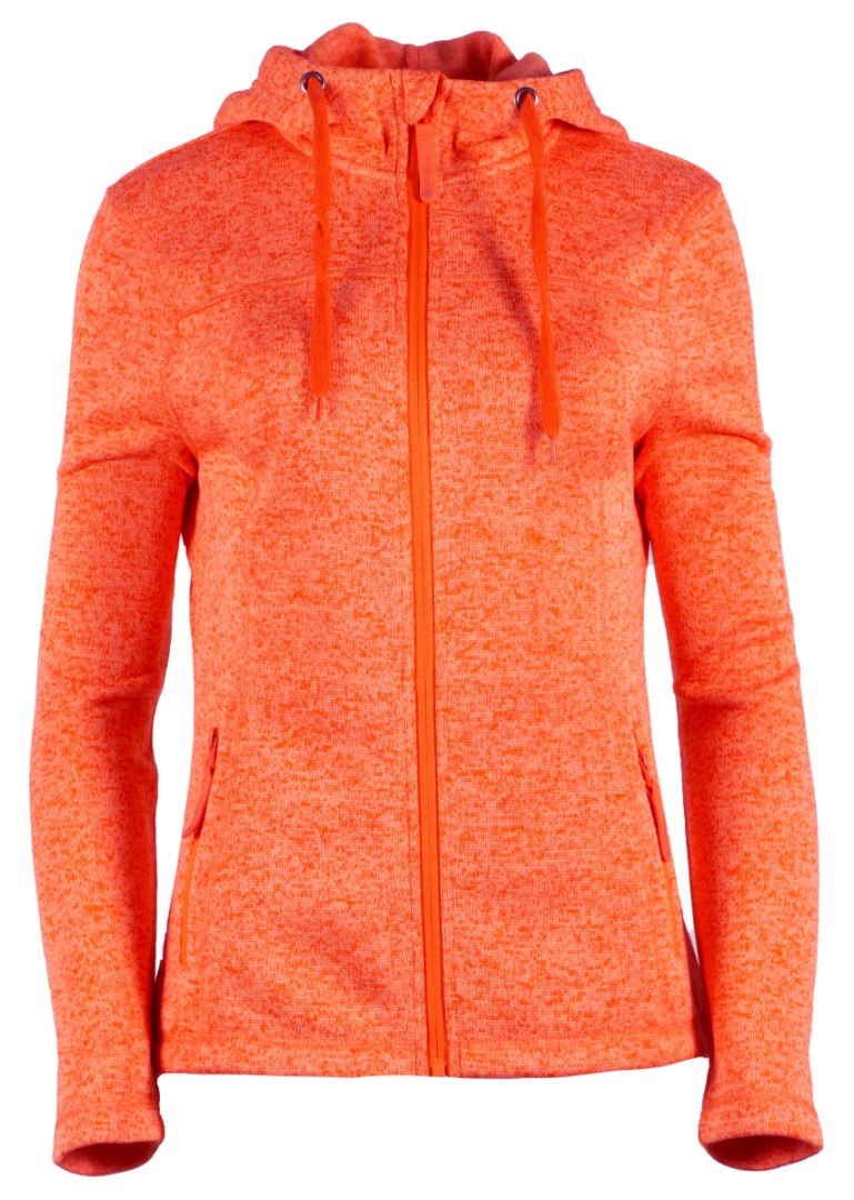 Damska bluza z kapturem, dzianinowa, polarowa, zapinana na suwak.