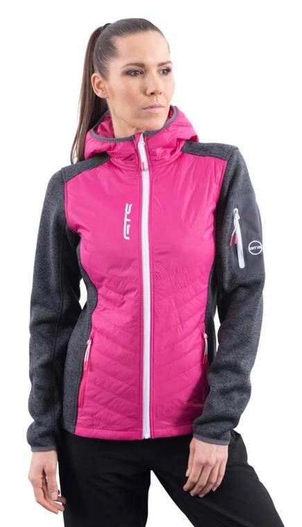 Kurtka damska GTS wykonana jest z przyjemnie lekkiego, elastycznego i ciepłego materiału w połączeniu z rozciągliwą tkaniną. Ten hybrydowy krój cieszy się dużą popularnością, pozwalając na noszenie jej jako warstwy wierzchniej lub jako warstwy środkowej pod kurtką zimową. Kurtka jest w pełni zapinana na suwak, ma stały kaptur, wyższy kołnierz i osłonę podbródka, która zapobiega jego nieprzyjemnemu zaczepianiu. Pikowane panele przednie i tylne są odporne na warunki atmosferyczne. Z przodu znajdują się dwie główne kieszenie zapinane na suwak. Rękawy, dół kurtki i kaptur są elastyczne, aby zapobiec przedostawaniu się zimnego powietrza pod kurtkę, zapewniając 100% komfort termiczny.