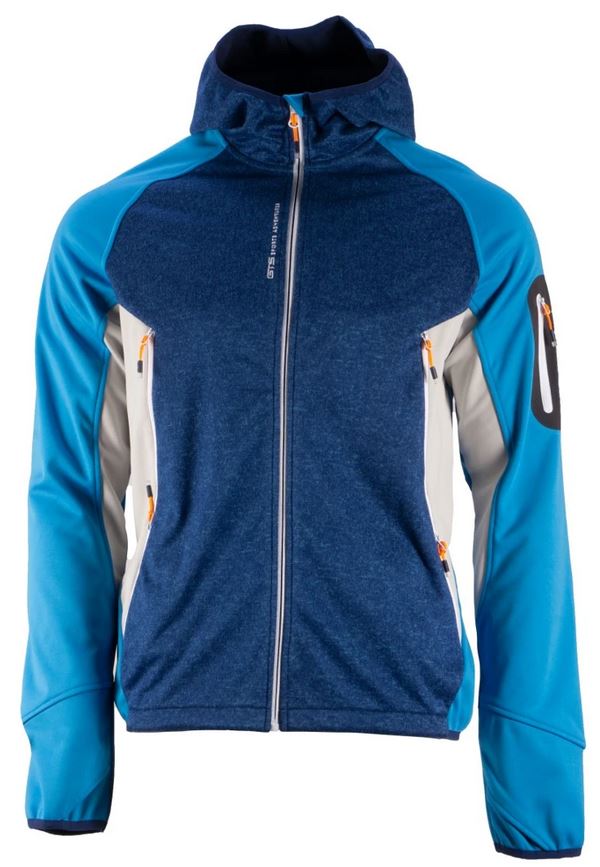 Męska bluza GTS wykonana jest z lekkiego i wygodnego materiału. Bluza składa się z dwóch różnych materiałów, co czyni ją popularnym modelem hybrydowym. Przód bluzy wykonany jest z ciepłego, polarowego materiału, a reszta kurtki z elastycznego, lekkiego materiału. Bluza jest zapinana na suwak, ma stały kaptur, wyższy kołnierz i osłonę podbródka, która zapobiega nieprzyjemnemu uciskowi. Z przodu znajdują się dwie główne kieszenie, a kolejna kieszeń zapinana na suwak znajduje się na lewym rękawie. Kaptur i rękawy wykończone są elastyczną lamówką, a mankiety posiadają otwory na kciuki. Logo GTS znajduje się pod zamkiem i na lewym rękawie.