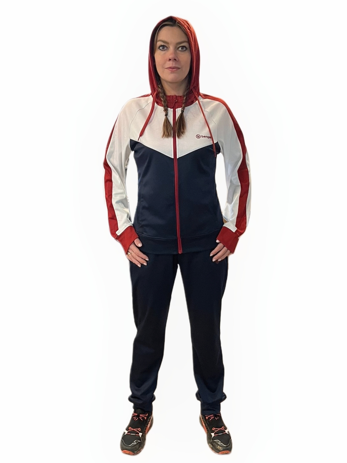 NOWY DAMSKI DRES TRENINGOWY BENGER TRAINING SUIT NAVY RED ROZMIAR 36