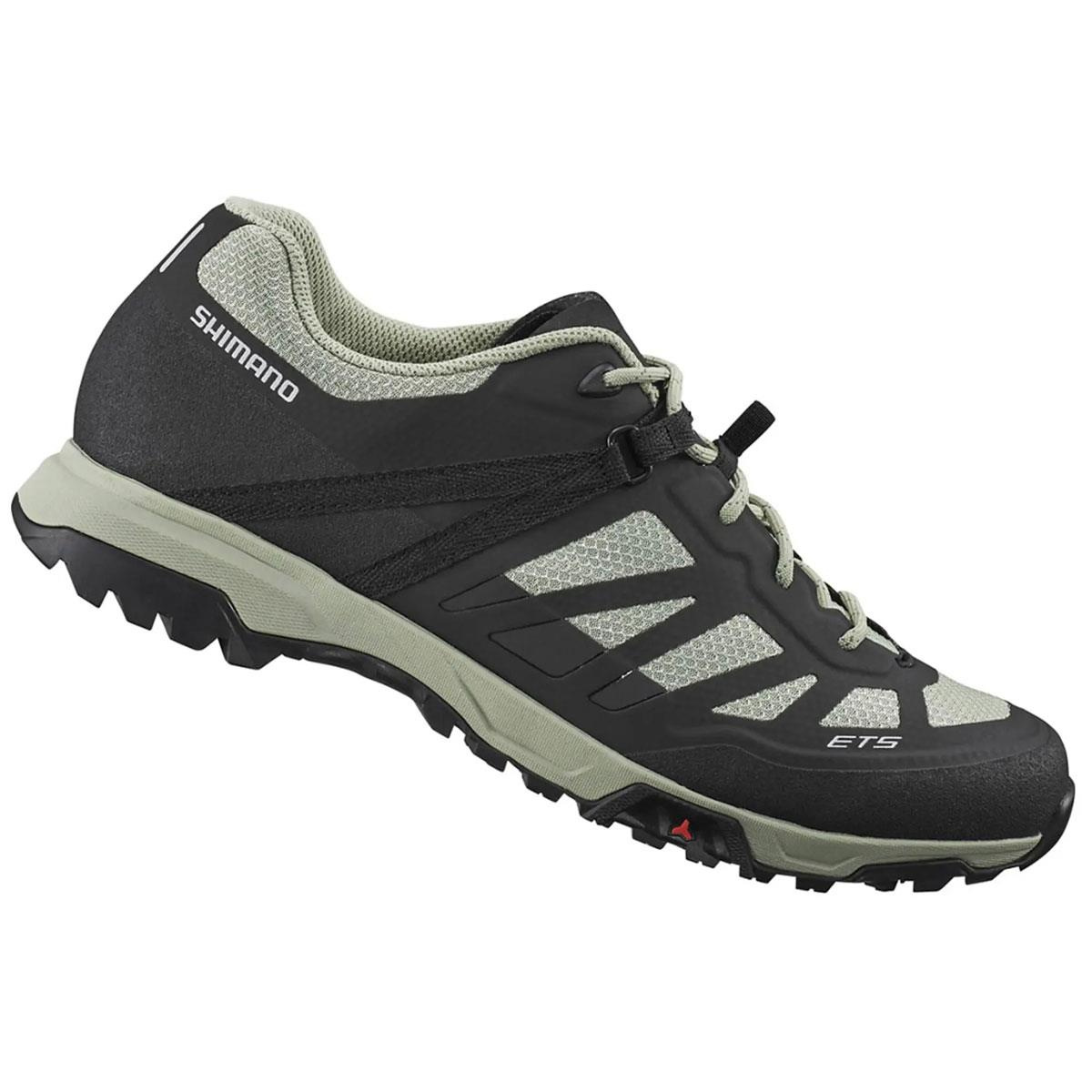 Buty rowerowe Shimano ET5 MTB zostały zaprojektowane z myślą o elitarnych kolarzach, ponieważ oferują niezrównaną przyczepność na szerokiej gamie pedałów, koszyków, pinów i nawierzchni, jednocześnie przenosząc całą moc na jazdę. Są również bardzo wygodne, bezpieczne i oddychające podczas chodzenia i pedałowania. Te buty rowerowe posiadają gumową podeszwę zewnętrzną z bieżnikiem blokującym 360°, co gwarantuje najlepszą przyczepność zarówno na pedałach, jak i na podłożu, dzięki czemu idealnie nadają się do jazdy górskiej oraz na mokrym lub trudnym terenie. Podeszwa środkowa z pianki EVA wzmocniona nylonem z włóknem szklanym zapewnia miękką sztywność i doskonałe przenoszenie energii dzięki systemowi SPD SI. Cholewka wykonana jest z siateczki z powłoką TPU, która zwiększa jej trwałość i sprzyja wentylacji wewnątrz. Te buty do jazdy górskiej posiadają odblaskowe detale, ochronny nosek oraz system sznurowania Mini Power Strap, który utrzymuje stopę, zapewniając bezpieczeństwo i wsparcie.